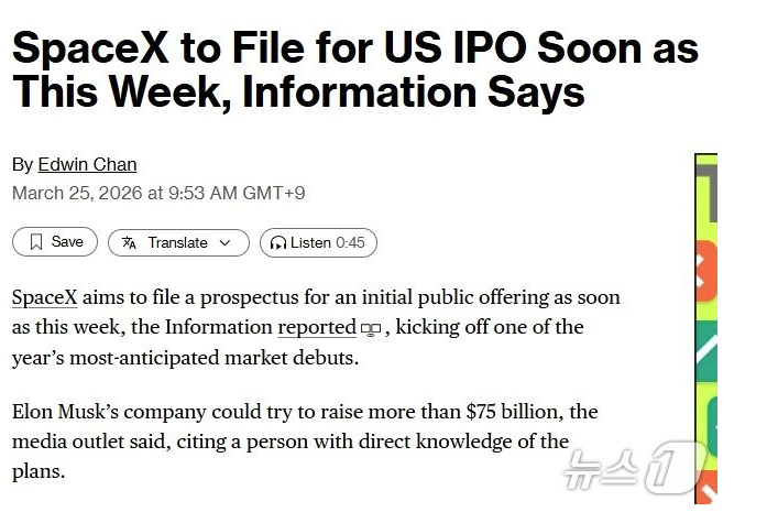 "스페이스X 이번 주 내 상장 신청한다"